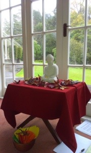 Shrine prepared by Sue, with everyone’s aspirations in the bowl below